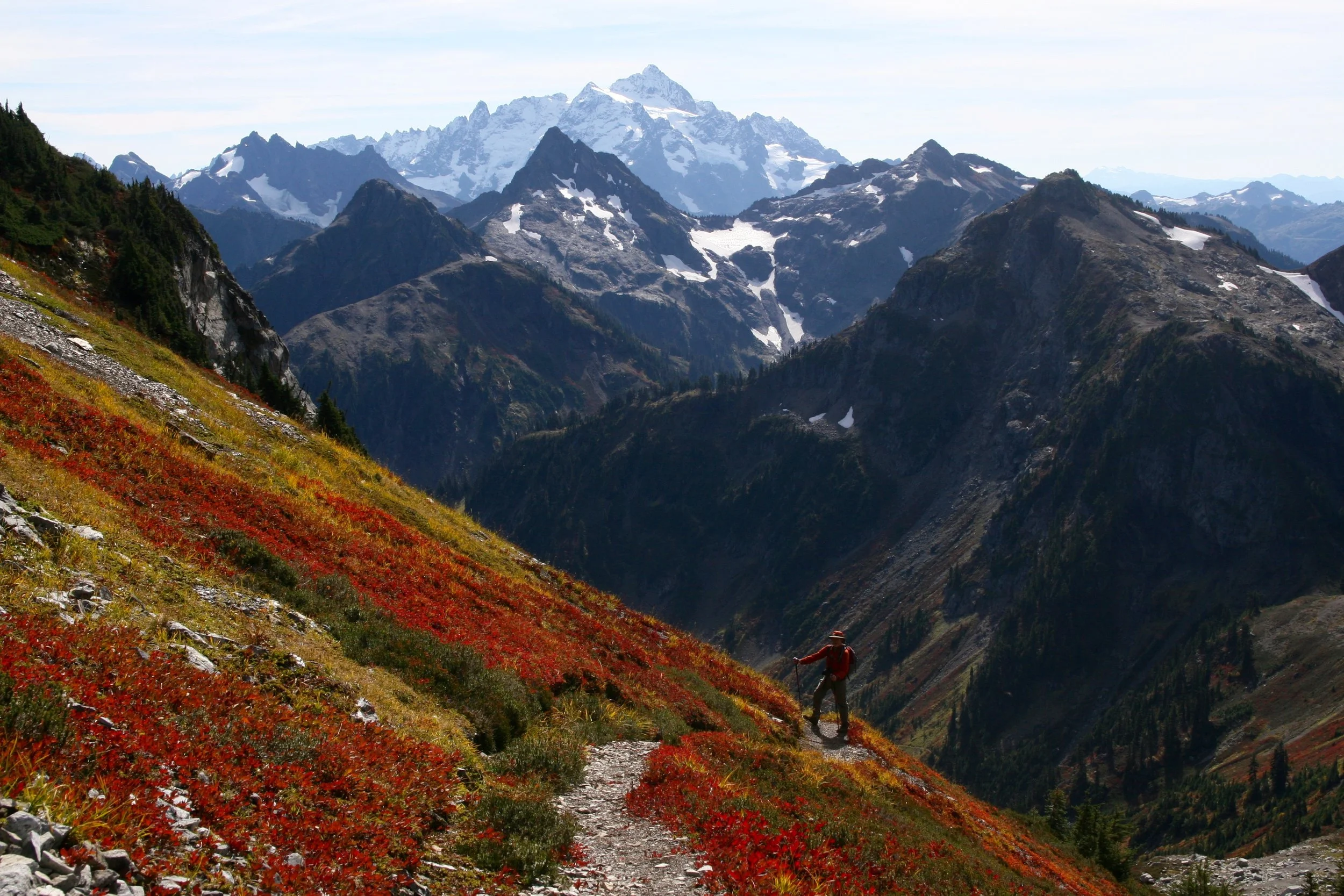 As far as hiking in the Cascades is concerned, could there be a better month than September? Not too hot, not too cold, less bugs, less people, ripe berries and vivid color. After a summer of choking fire smoke and thick haze, I was chomping at the bit for some good fall weather. Neighbor Greg and Dilley felt the same as I did so when Tuesday’s forecast looked clear and sunny, off we went in search of adventure.
