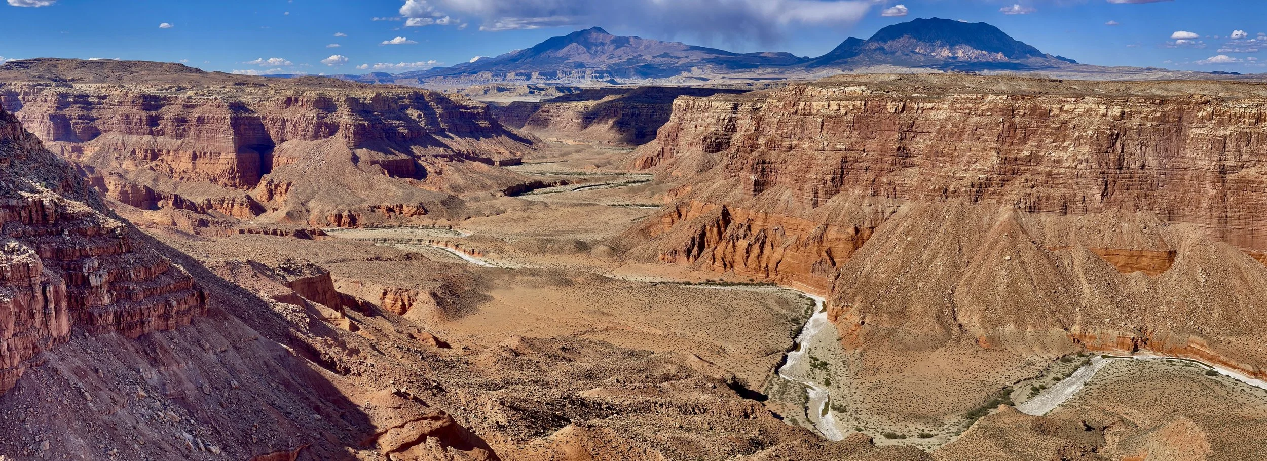 The site was around a corner in a very large flat area with a big rock fire ring right near the edge of a cliff. The view from the rim was looking straight up into Bullfrog Canyon with the Henry Mountains looming above the head of the canyon. A mostly dry Bullfrog Creek twisted and turned as it wound its way through the canyon with sheer walls rising on either side. It was just breathtaking. I knew right then we had found maybe the sweetest campsite ever. It was out of this world gorgeous.