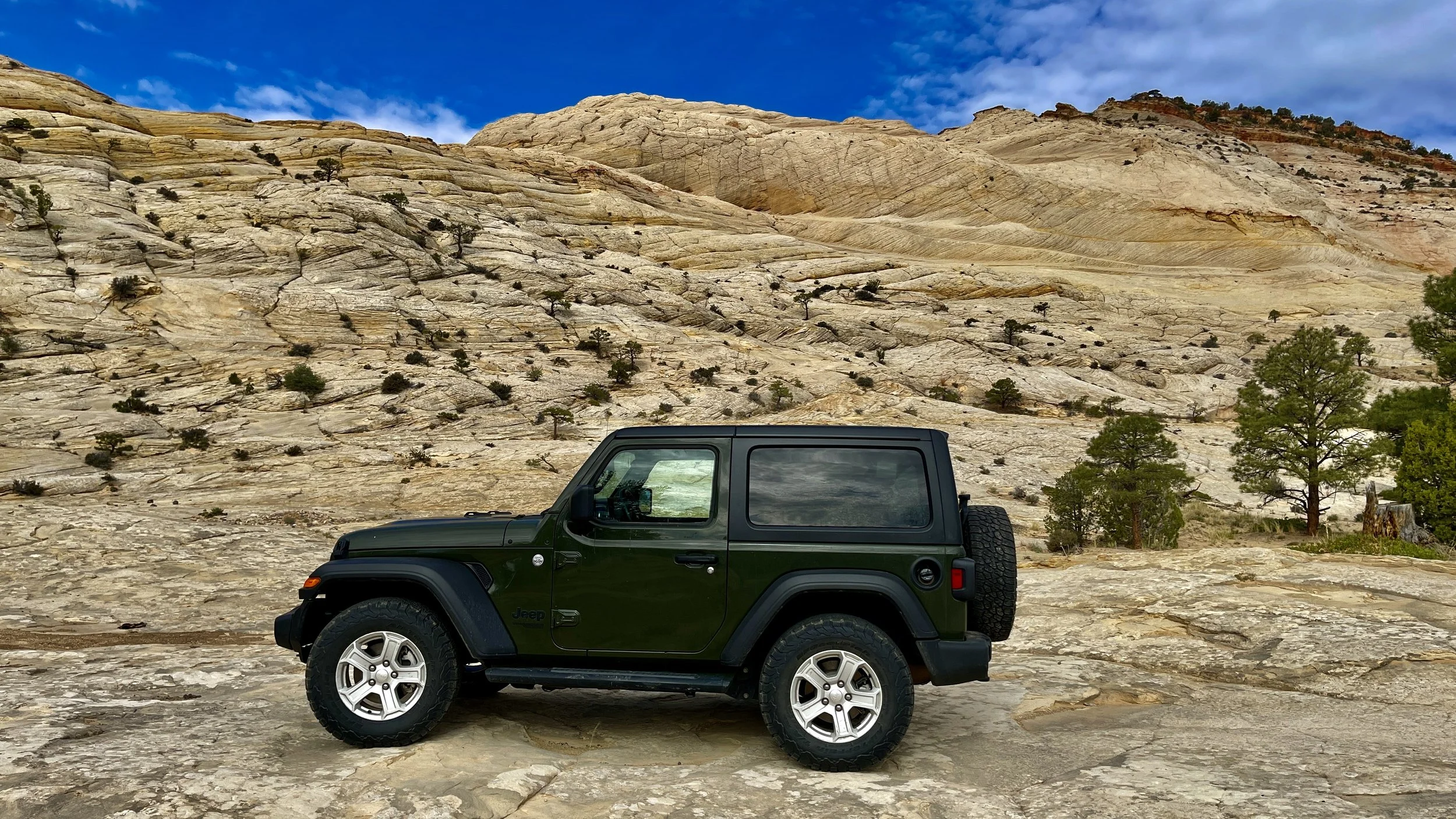 Tuesday morning we left the Navibahn at Fruita and drove the Jeep to Torrey. We topped off the gas and bought a bundle of firewood to use when we got back to Fruita since they have fire rings. Then we turned onto US 12 and headed back over the mountains and down to Boulder Town. In Boulder we turned off onto the Burr Trail. This is a mostly paved road that runs through a part of Capitol Reef we had never seen. Our plan was to drive the Burr Trail east, stopping at some points along the wasy until it dropped down the Burr switchbacks to the Notom Road. We would then turn south towards Bullfrog Marina on Lake Powell but then take a short Jeep road out to a spot called Bullfrog Canyon Overlook. This was a very obscure spot that I found on my Gaia app. It isn’t really listed on any of the park maps and there was no information I could find on the internet about it. But based on my map, it looked like it would be a spot we could camp on the rim of a canyon so thought it would be worth checking out. If it didn’t work out, we could camp at the campground down at Bullfrog on Lake Powell. Then the next morning we would check out Lake Powell and then drive north on the Notom Road all the way back to US 24 and back to Fruita.