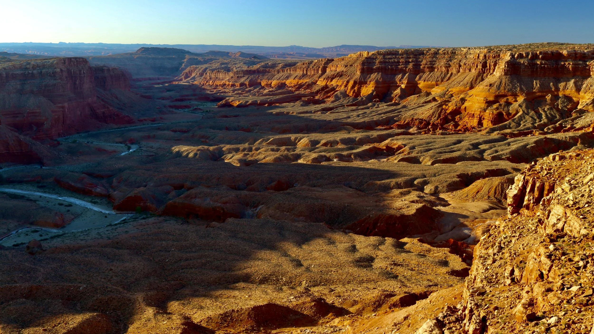 After dinner we took a walk. From our site we followed the rim a short way to the south and much to our pleasure, this opened up an entirely new view of Bullfrog Canyon looking south. In writing this I still can’t quite get over what a stunning setting our campsite was. I shot photos all evening through the golden hour until after the sun set which was at 8:09PM. Then to make a perfect situation even better, we remembered that we had bought wood for after we got back to Fruita. Well needless to say, the wood never made it back to Fruita. We had the most romantic crackling fire after the sun went down and the stars began to come out. If there is such a thing as a perfect camping trip, this was it.