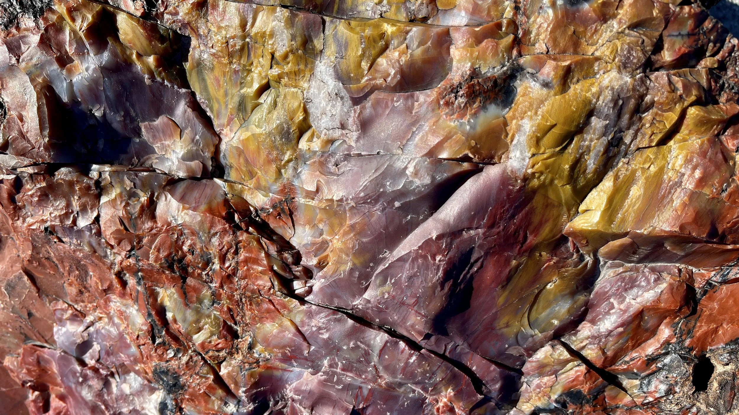 We made another stop and hiked the .75 mile Crystal Forest Loop. I liked this one more than the Giant Logs Loop because the logs were more interesting. It was also around five in the afternoon so the light was improving as the sun sank lower in the sky. There were a lot of specimens that had crystalized wood in all sorts of fantastic colors. I read this is caused when minerals from volcanic ash absorbed into the porous wood and crystalized over the millennia.