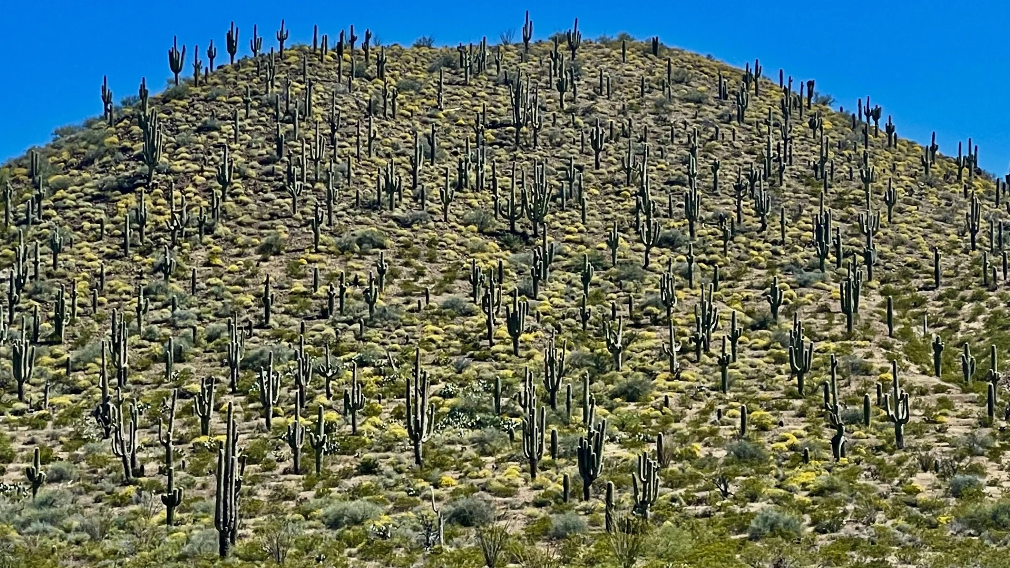 Petrified Forest National Park had been on my list for quite some time so I was excited to finally be checking it out. This would be the third National Park on this trip. It is located kind’ve out in the middle of nowhere. East of Sedona, south of Monument Valley, but not really close to either. It’s listed as a five and a half hour drive from Chiricahua but we made a couple of stops and it took us about seven and a half hours to get to the southern entrance to the park. Along the way we went through a particularly nice area near Globe, Arizona highlighted by the Salt River Canyon and hills covered in saguaro cactus.