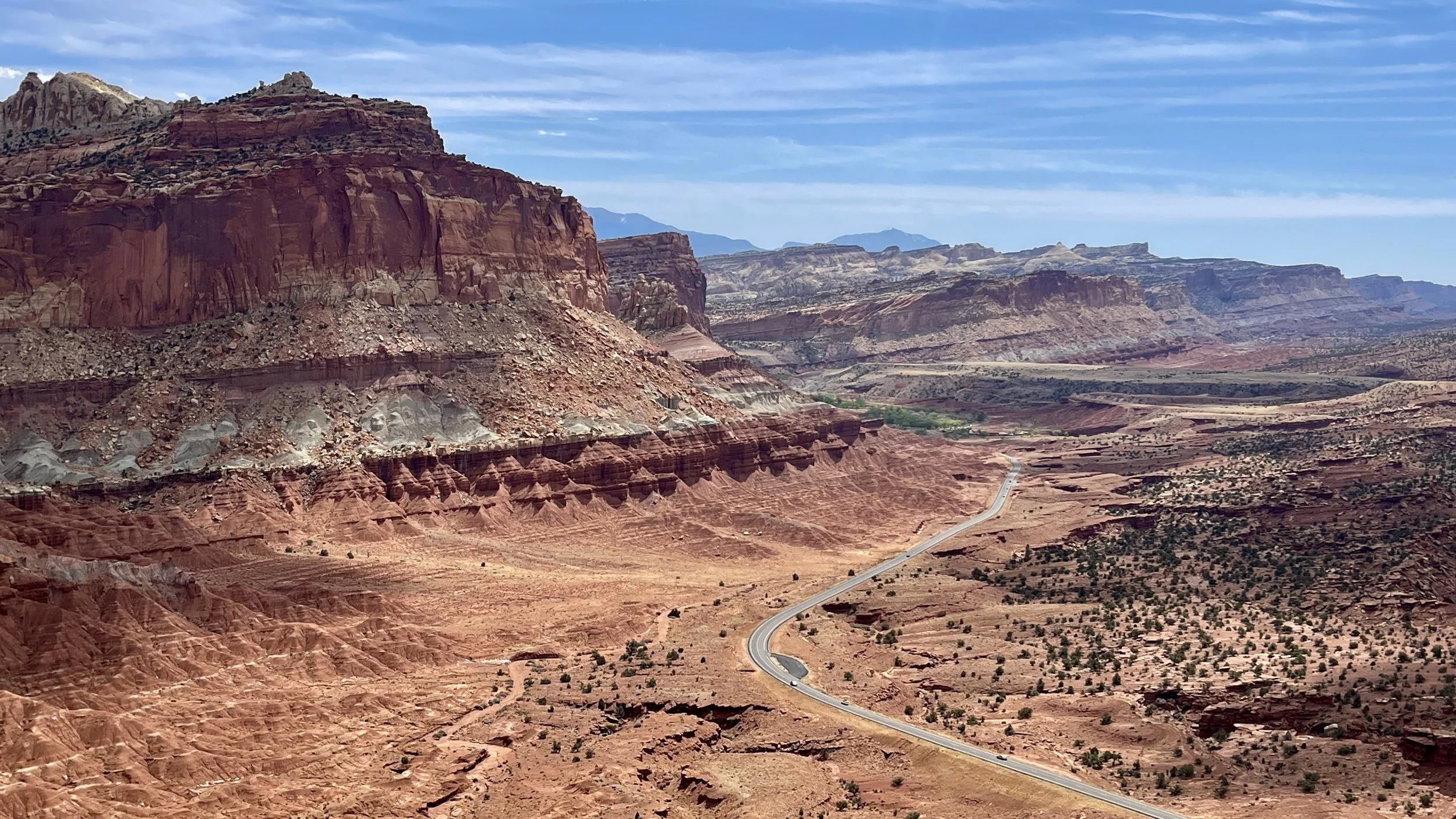What a view! Scenic Drive on the right, the Fruita District down by the trees and Navajo Knobs right in front of us.