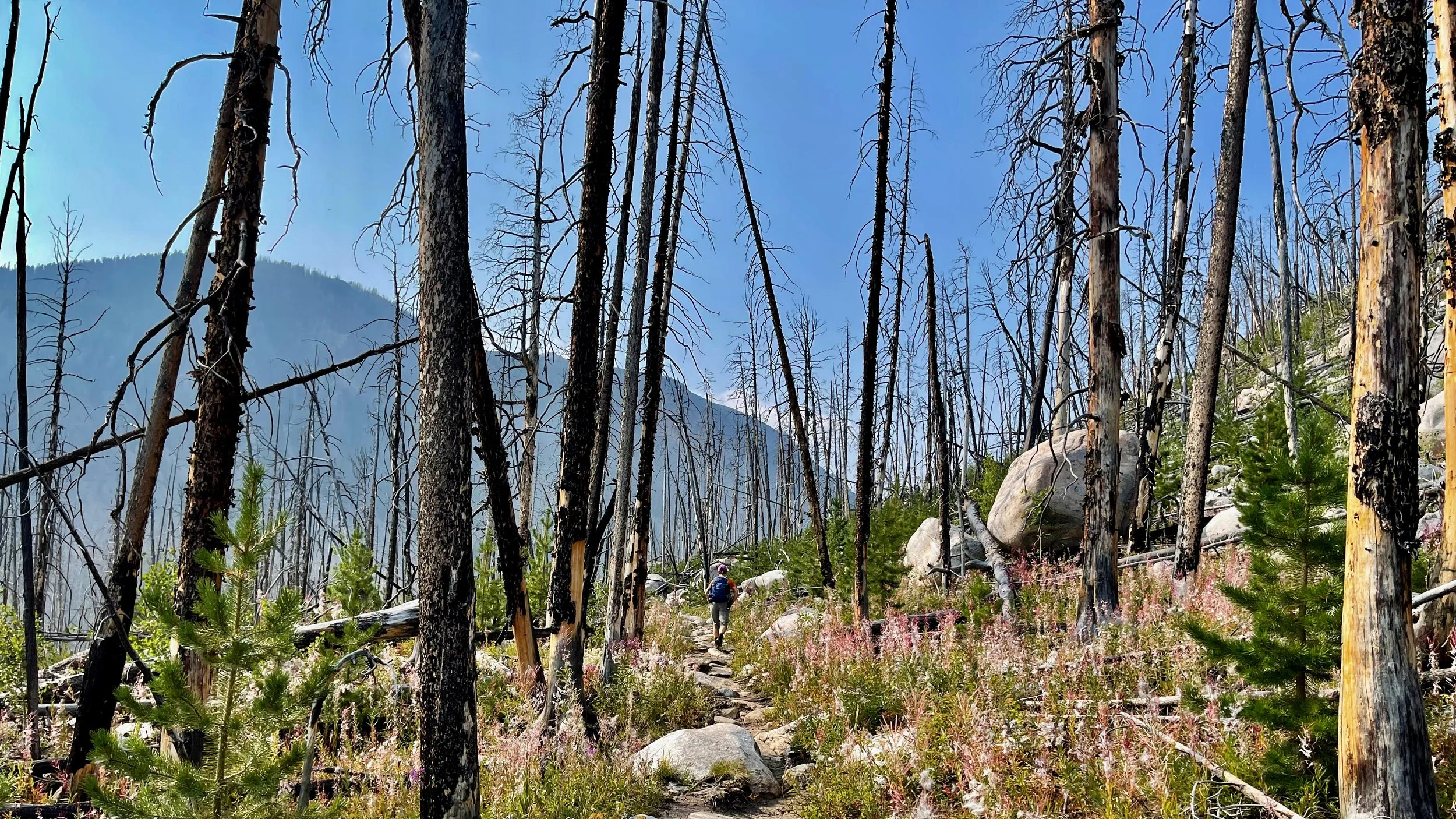 As we climbed higher we hiked through the burn zone from the 2008 Cascade fire that burned much of the West Fork valley. You would think hiking through the burn would be a drag but oddly enough, burn zones have their own interesting qualities, only one of which was more views than a deep forest hike would normally provide. After the first stiff mile the trail leveled out to a gentler grade and we began to follow Timberline Creek higher into the upper part of the valley.