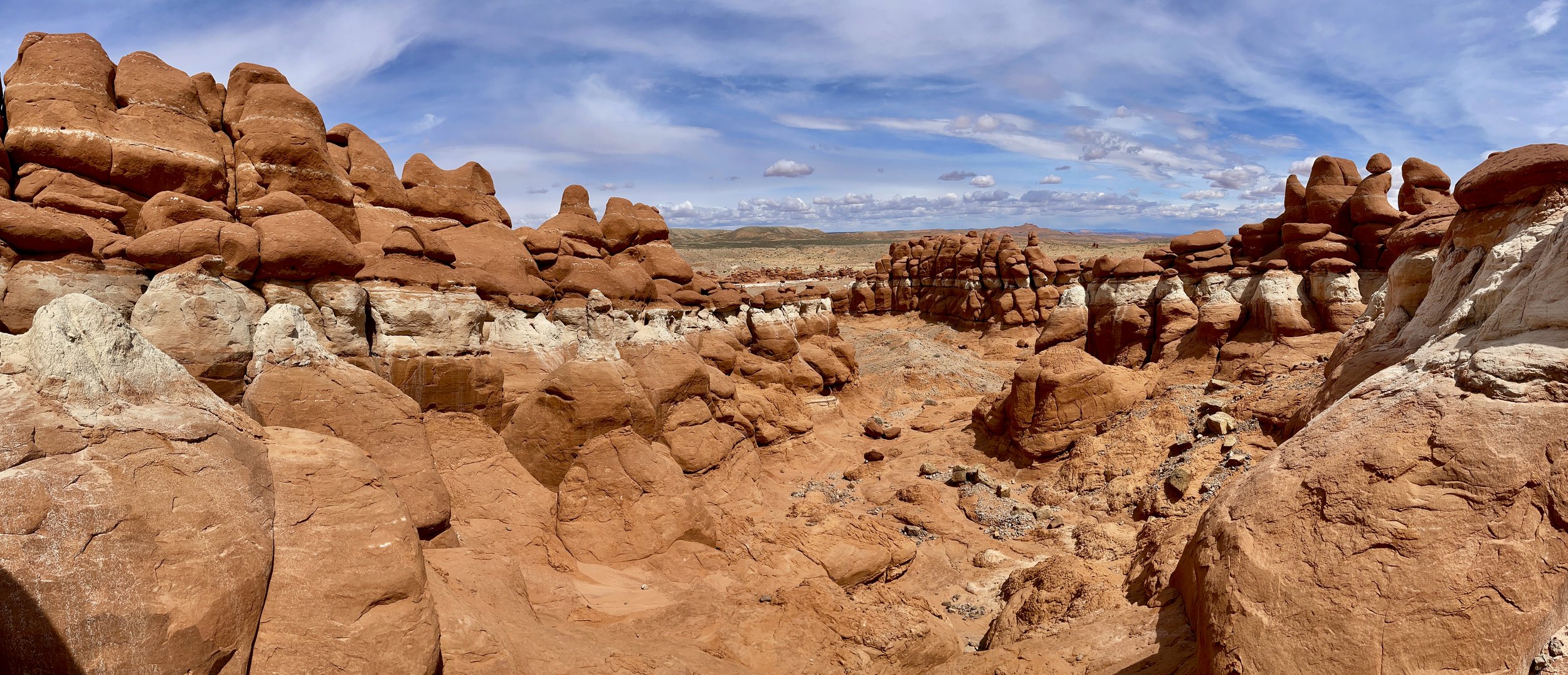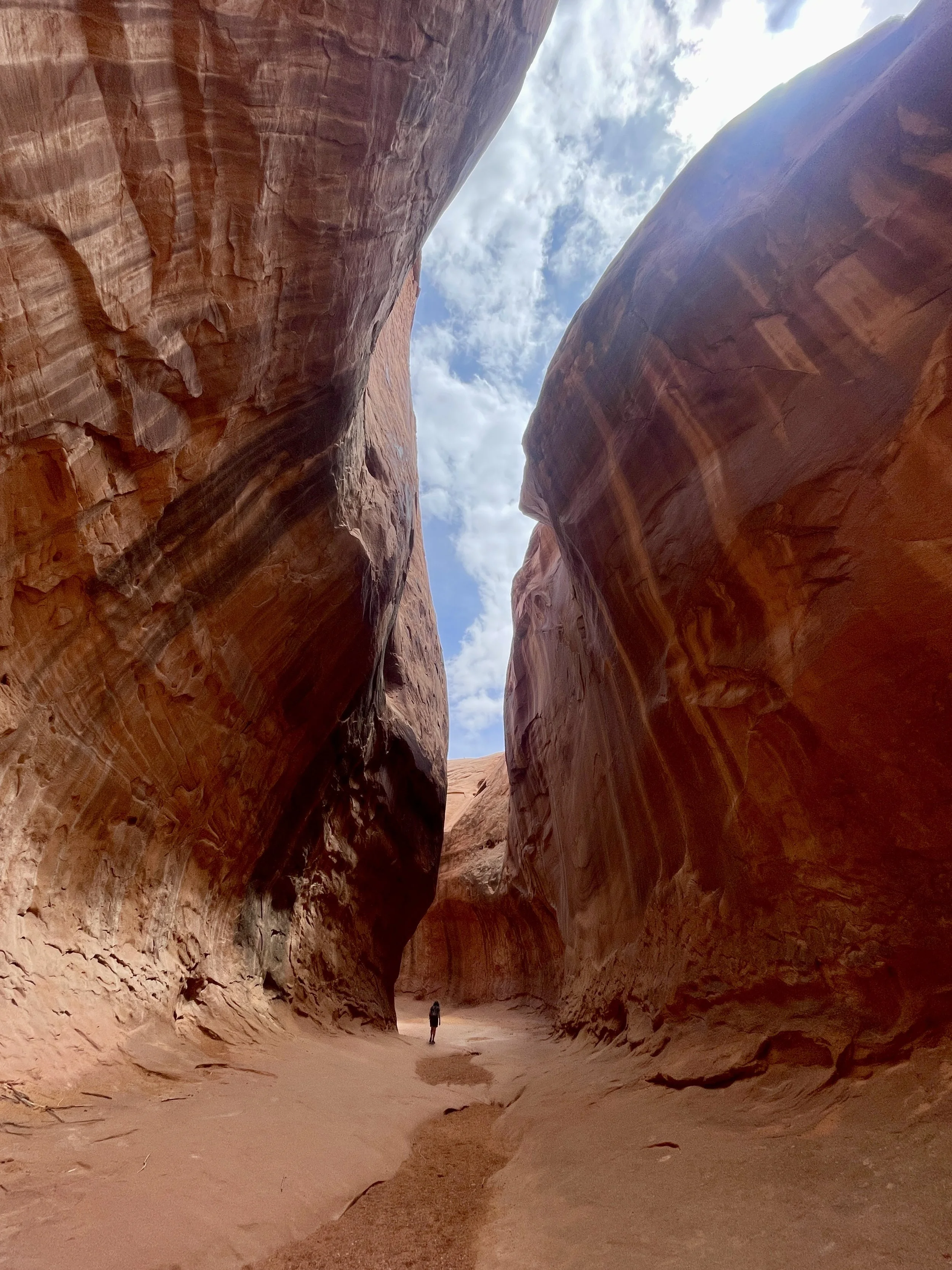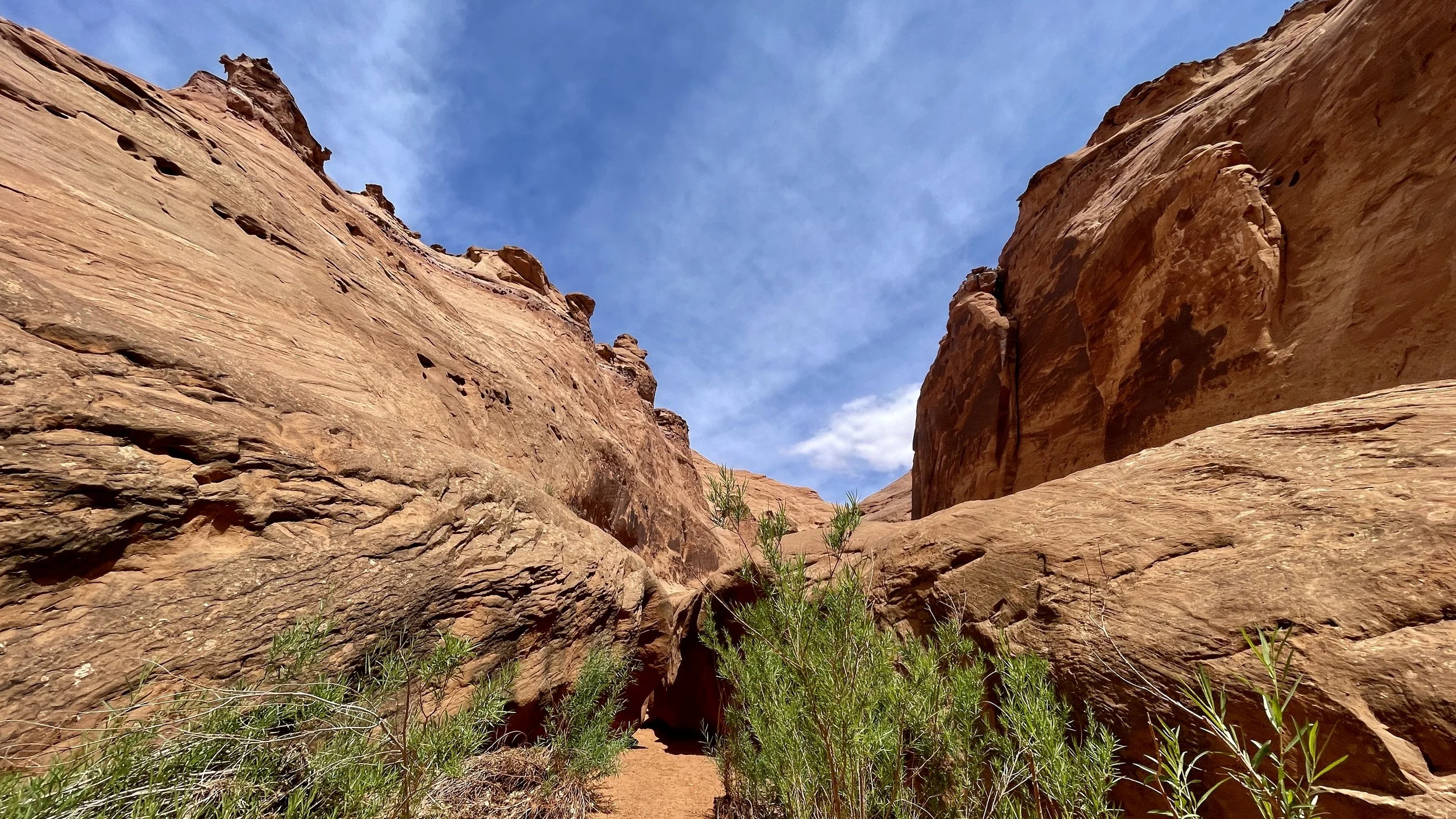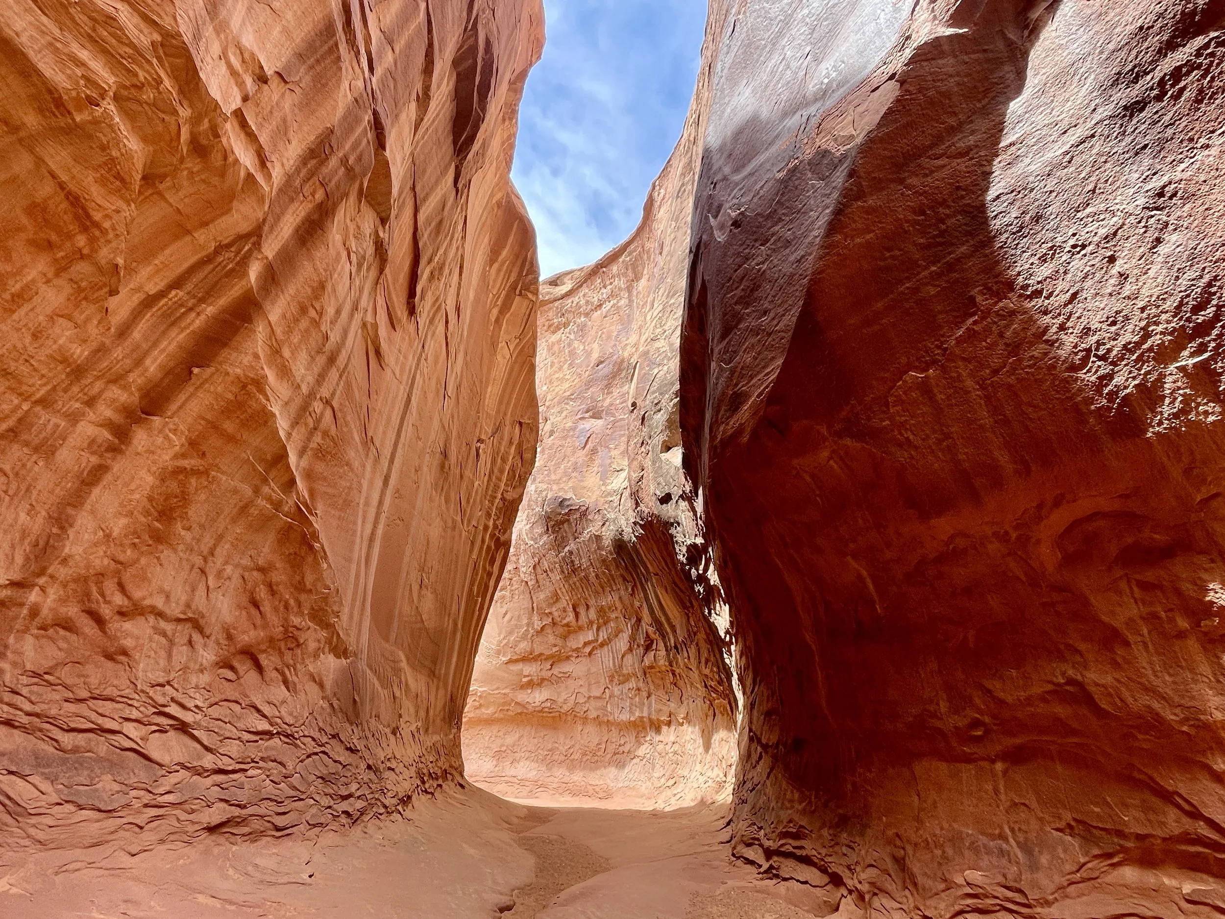 After a morning that saw a failed attempt at a Long Dong Silver sunrise, a failed attempt at a Moonscape Overlook sunrise and a drive up to Goblin Valley and back, it was still not yet noon and the sun was shining. I had checked NOOA for the latest forecast and it appeared we had made it past the rain event. Now we just had to let things dry out. Since it was still early, we thought we might try driving down 95 to the Irish slots and give Leprechaun Canyon a try. If it was still too muddy we could just try again the next day.