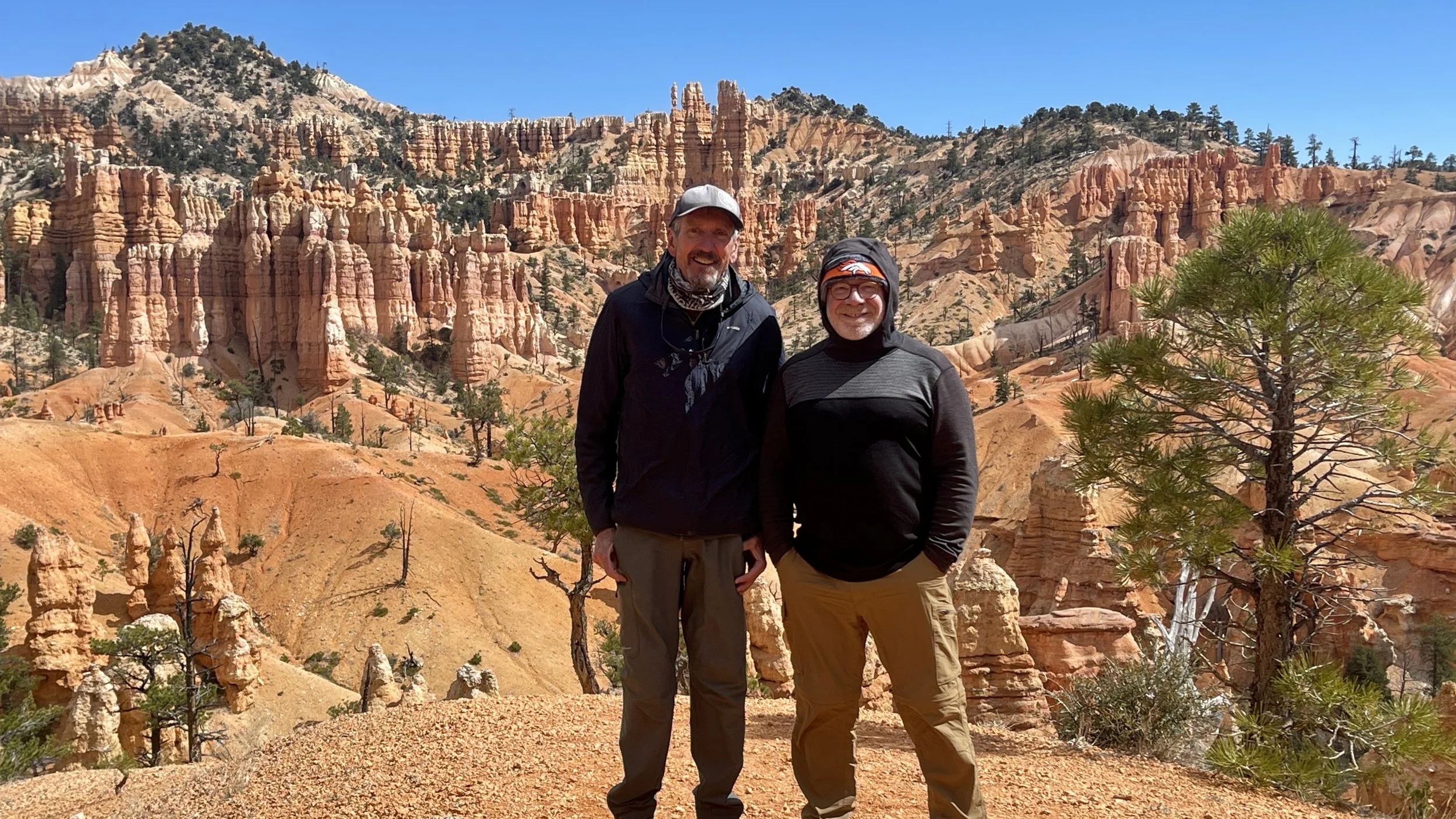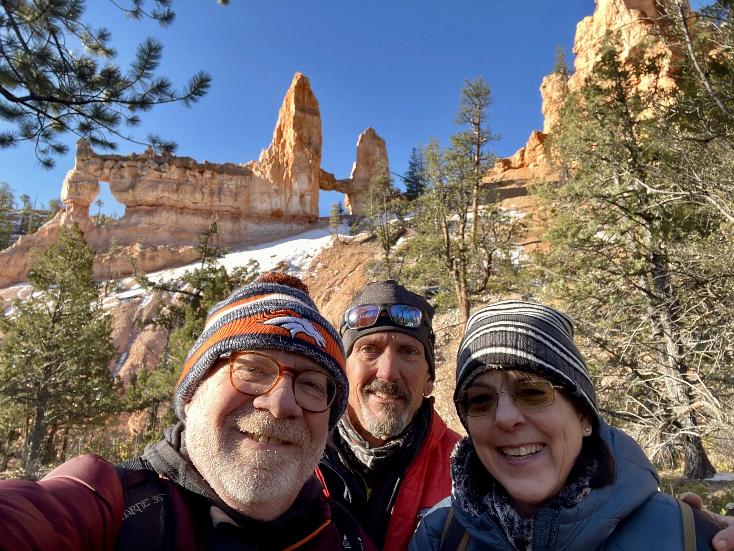 We hadn’t seen anyone since starting our hike but after Tower Bridge we did run into a few people. Nowhere on the hike did it ever feel crowded and compared to the Queen’s Garden/Navajo Loop, this trail felt empty. We followed the high ridge east until a series of switchbacks dropped us down into Fairyland Canyon surrounded by tons of white and orange hoodoos. After a break we worked our way up Fairyland Canyon, gaining several hundred feet until we finally popped out at Fairyland Point. Here was where we had an alternate plan. After having already hiked six miles, I had told Bridgit that she could wait at Fairyland Point and I would finish the last two miles with Mike and then drive back and pick her up. After all, this was our first real hike of the year and I wasn’t too sure how tired she might be. But my wife is a scrapper and she said she felt good so the three of us began to hike south along the Rim Trail to where we had parked. We got some great views along the way of bits of our trail we had hiked and we even spotted Tower Bridge way off in the distance. All told we hiked 8.24 miles and gained about 1,300’ of vertical although according to Gaia it is more like 2,100’ so we will go with that! Hiking the Fairyland Loop was a fantastic way to kick off our vacation. While the Queen’s Garden/Navajo Loop is stunning in its own right, I think I may have enjoyed the Fairyland Loop even more. Because it is almost five miles longer than the Queen’s Garden Loop it has more variety but for those visiting this great park, I highly recommend both!