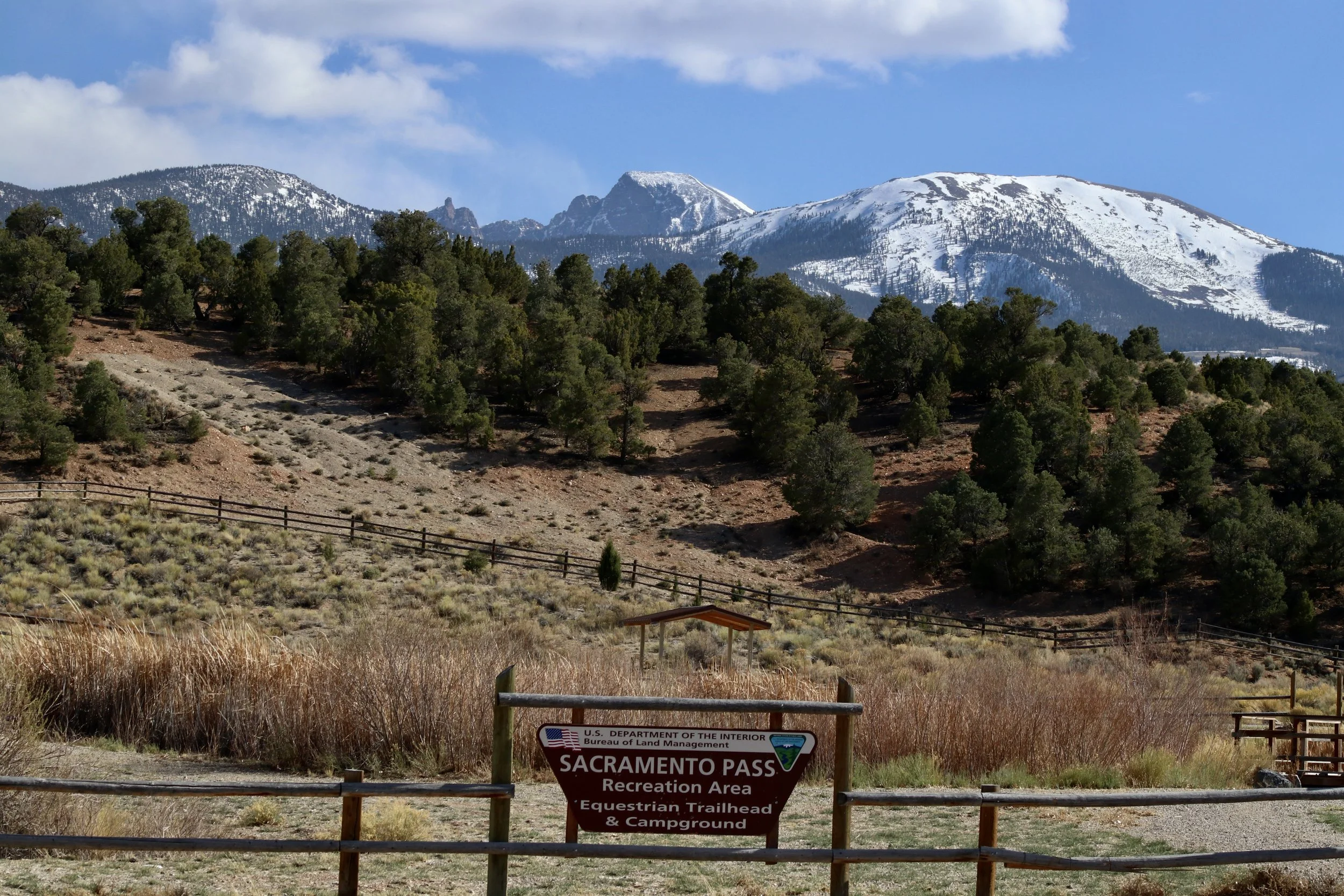 Bridgit and I left on April 16th. Our first day was about an eight hour drive to a spot we commonly stay due to it being a perfect length for day one. The free campsite parking area next to the Oasis On The Snake must have been discovered. Normally there is at best one other vehicle but this time almost all the spots were taken. Our second day we drove down through eastern Nevada and got a spot at Sacramento Pass Recreation Area. This is a first-come, first-serve free campground. I’m a little nervous about not having reservations but there were plenty of spots when we arrived. When we got there we drove through a couple of sites to see if they were flat. On one of them the turn was a bit tight and I ended up snagging an iron fire pit ring under my Jeep. Luckily there was no damage (well the fire ring was a little bent) and I just added it to the list of many other bonehead moves I’ve made as an RV owner. This is a nice campground sitting at 6,692’. It is just north of Great Basin National Park and we had a good view of 13,065’ Wheeler Peak right from our site.