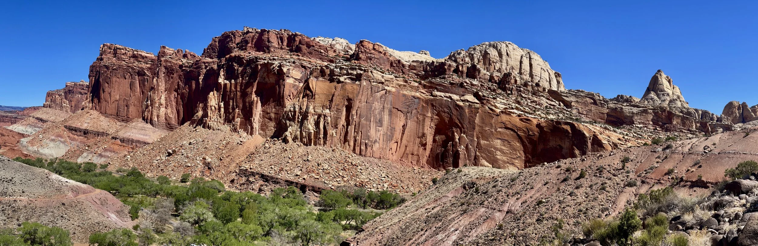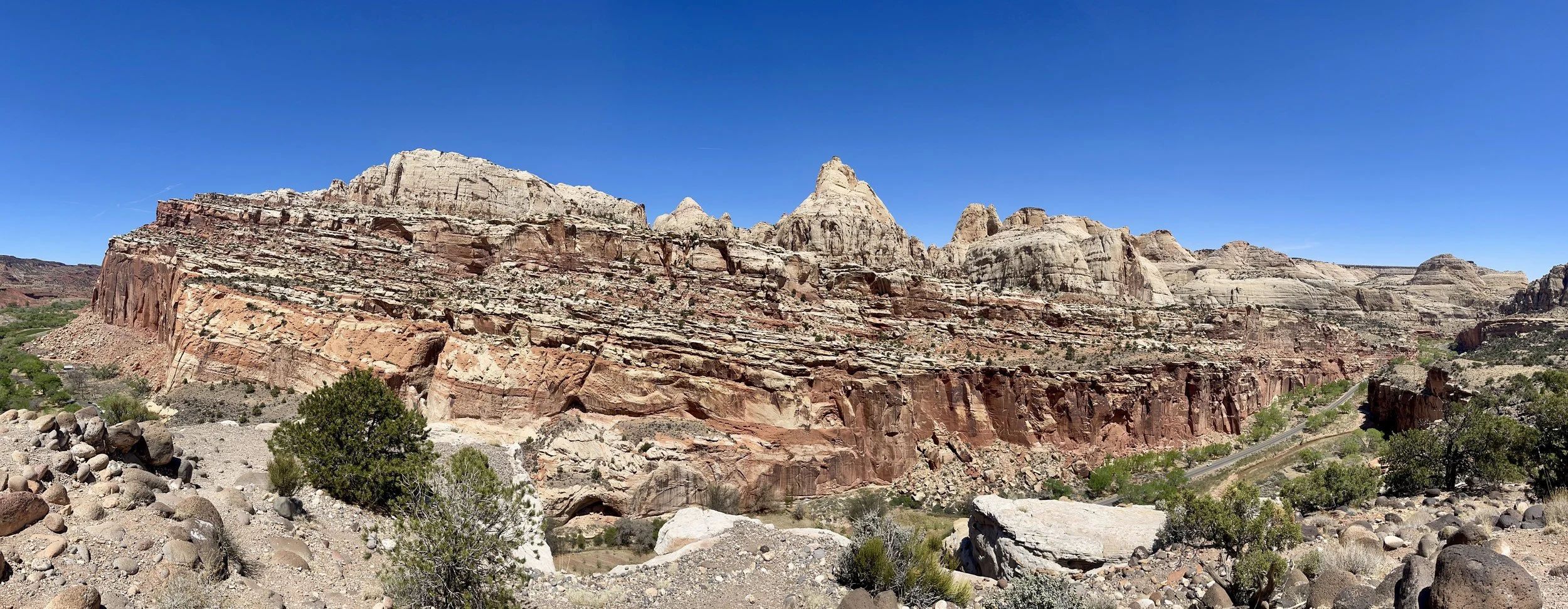 We had hoped to extend the trip by driving the Caineville Reef Road up and around Factory Butte but with the tire situation we just drove out to the highway and back to our campground. Just driving into Capitol Reef from the east is a sensational drive as you enter a land of incredible rock.