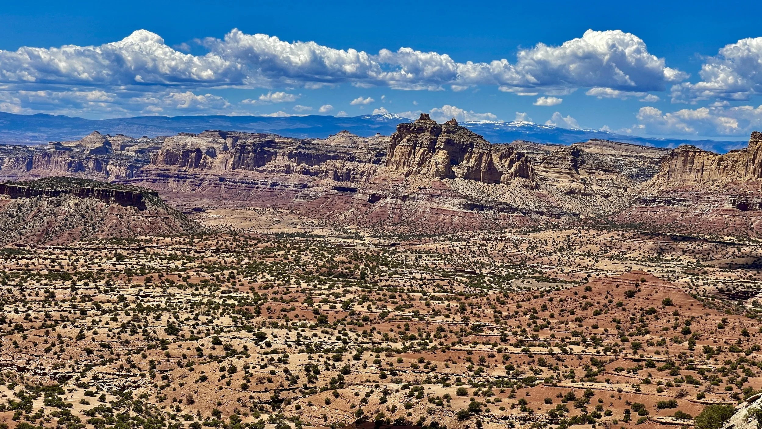 Just a short way further we came to another campground called Temple Mountain West. We continued up the road and it climbed up much higher and gave us great views of the backside of the San Rafael Reef and Temple Mountain. We headed back into the Little Ocean Wilderness and Temple Mountain Road became McKay Flat Road. Taking a right on Reds Canyon Loop we felt like we were really getting into the back country. Another right got us off maintained roads and onto a 4WD road called Family Butte Road. At this junction we had a great view of Family Butte with its many clustered pinnacles.